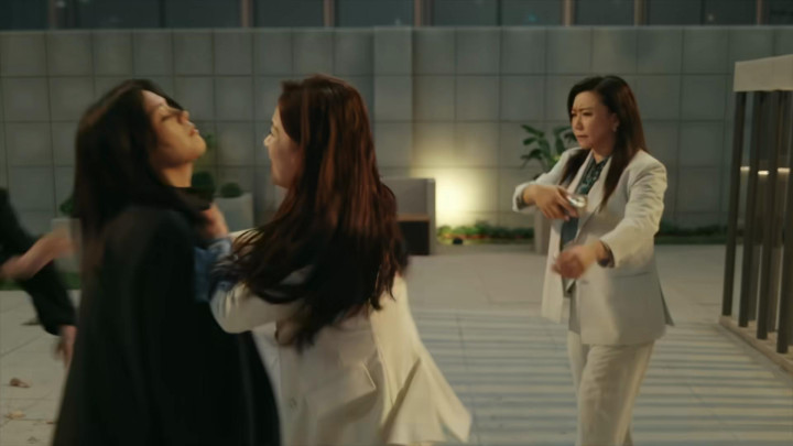 复仇归来的几场戏,太对味了,第一次出现在敌蜜眼前,深色外套凌乱头发,都遮挡不了她狠厉的眼神。